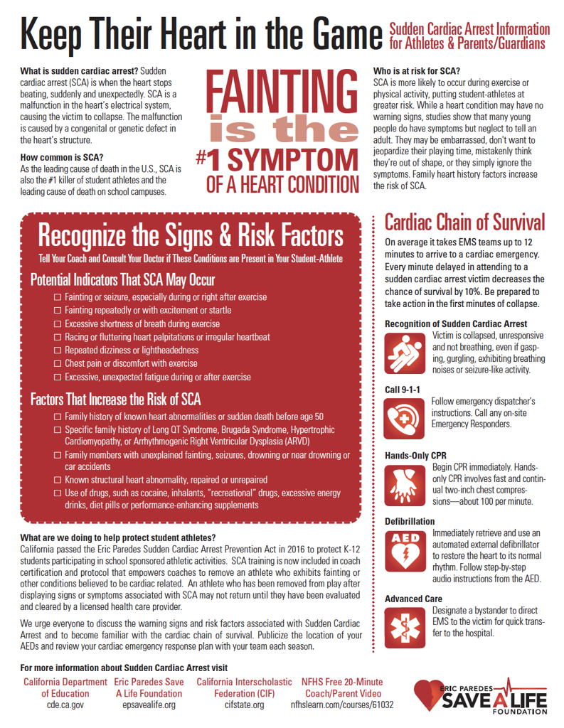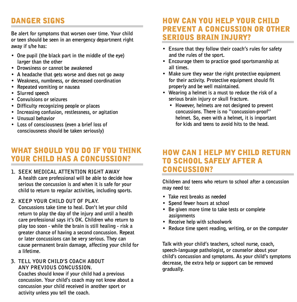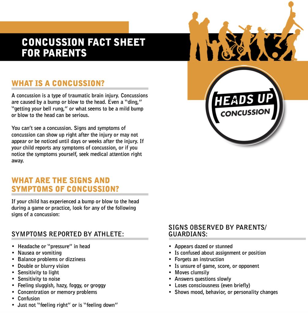 Safety is everyone's responsibility! Please read the following quick sheets on concussion and cardiac arrest. You never know when you may need this information.